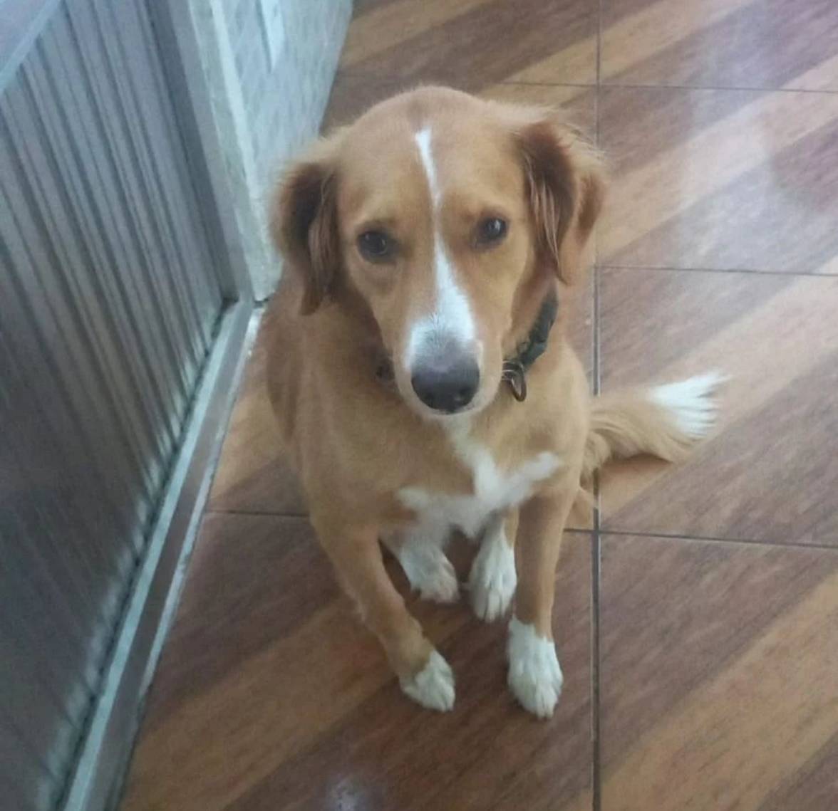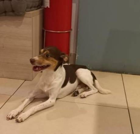 Foi resgatada na rua, estava sofrendo muito e infelizmente a pessoa que está com ela não pode ficar.