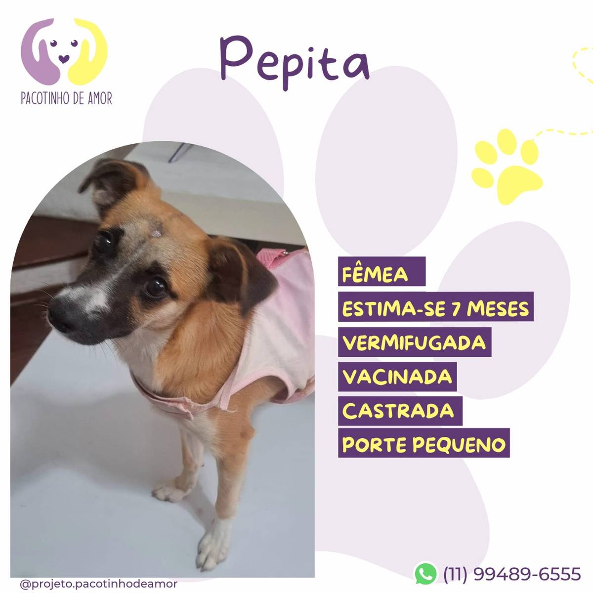 Obs.: Não reservamos animais. Não fazemos adoção por terceiros. Enviamos resposta para os perfis aprovados em até 3 dias úteis.