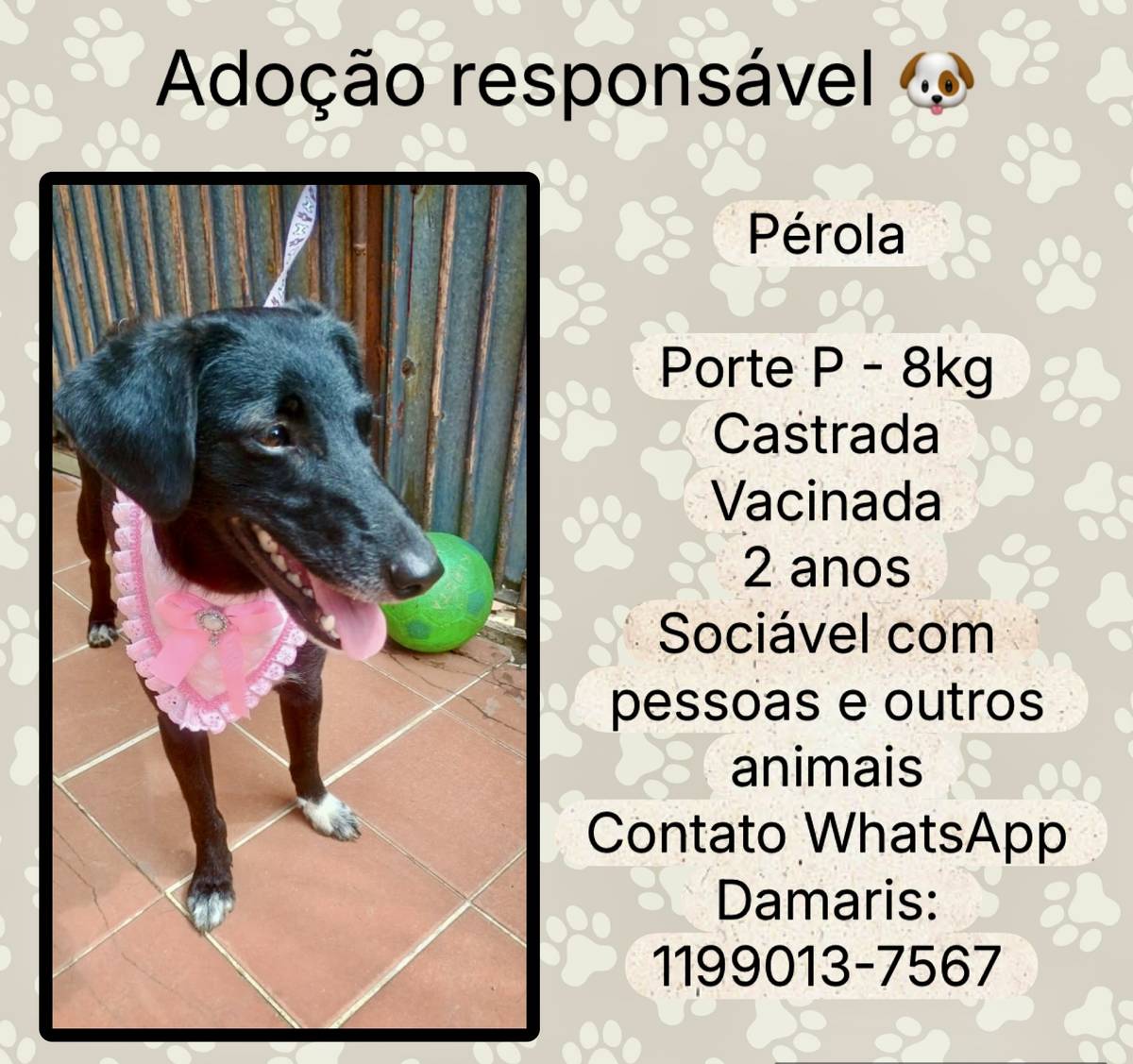 Animais têm sentimentos e precisam de cuidados e atenção todos os dias. Ao adotar, você será responsável por garantir que ele seja cuidado e amado durante toda a vida dele!