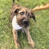 Está com aproximadamente 45 a 50 dias, já tomou a primeira vacina V10, foi vermifugado, está desmamado, comendo ração e com os dentinhos a todo vapor.