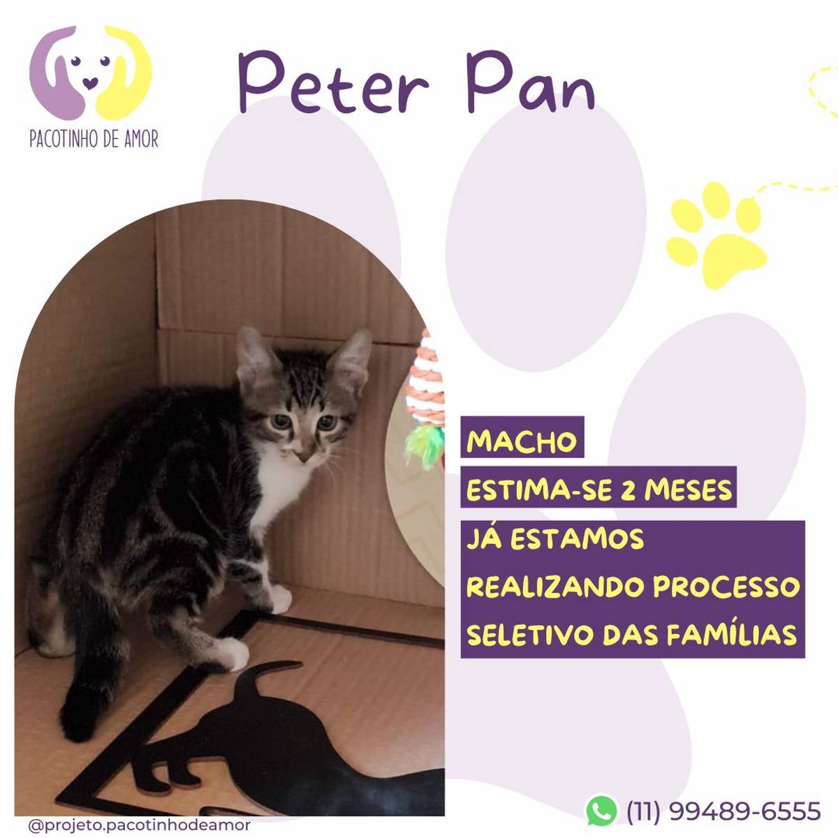 Obs.: Não reservamos animais. Não fazemos adoção por terceiros. Enviamos resposta para os perfis aprovados em até 3 dias úteis.