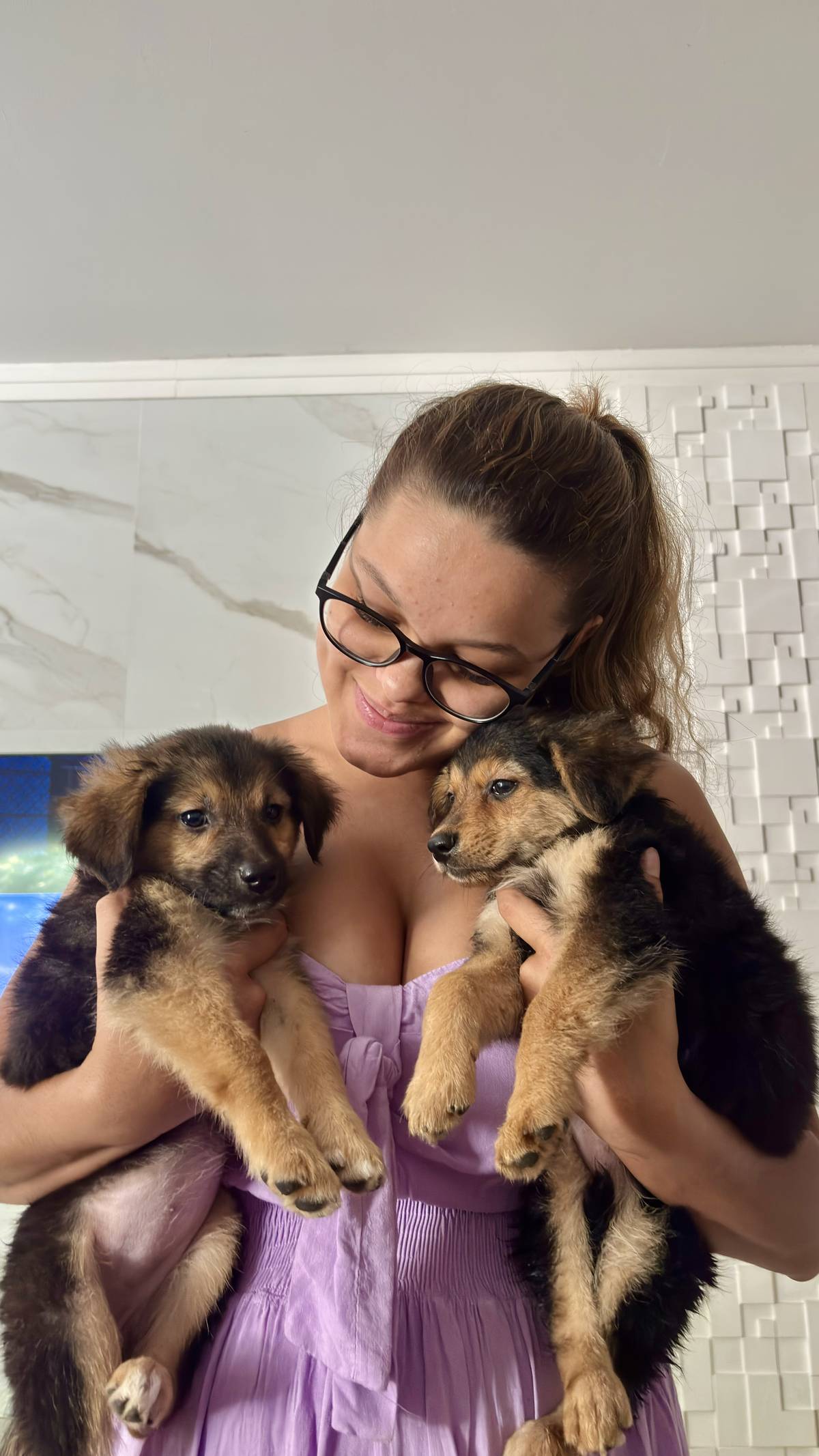 Abandonaram elas duas na rua e a gente pegou, cuidou, levamos no veterinário, compramos remédios, kit shampoo, brinquedos, coleira, ração e biscoito!