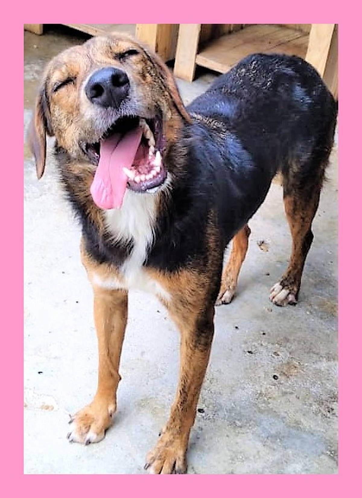 Ela tem 2 anos, é de porte médio e pesa cerca de 16 kg. Além de linda com sua pelagem única, é carinhosa e sonha em ter uma família para chamar de sua. 🏡❤️