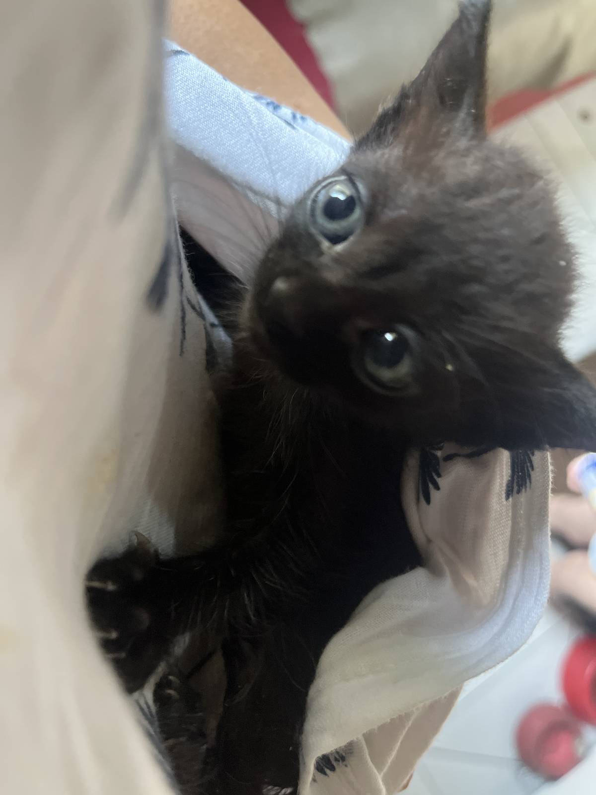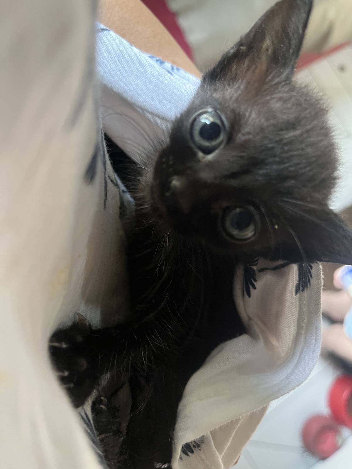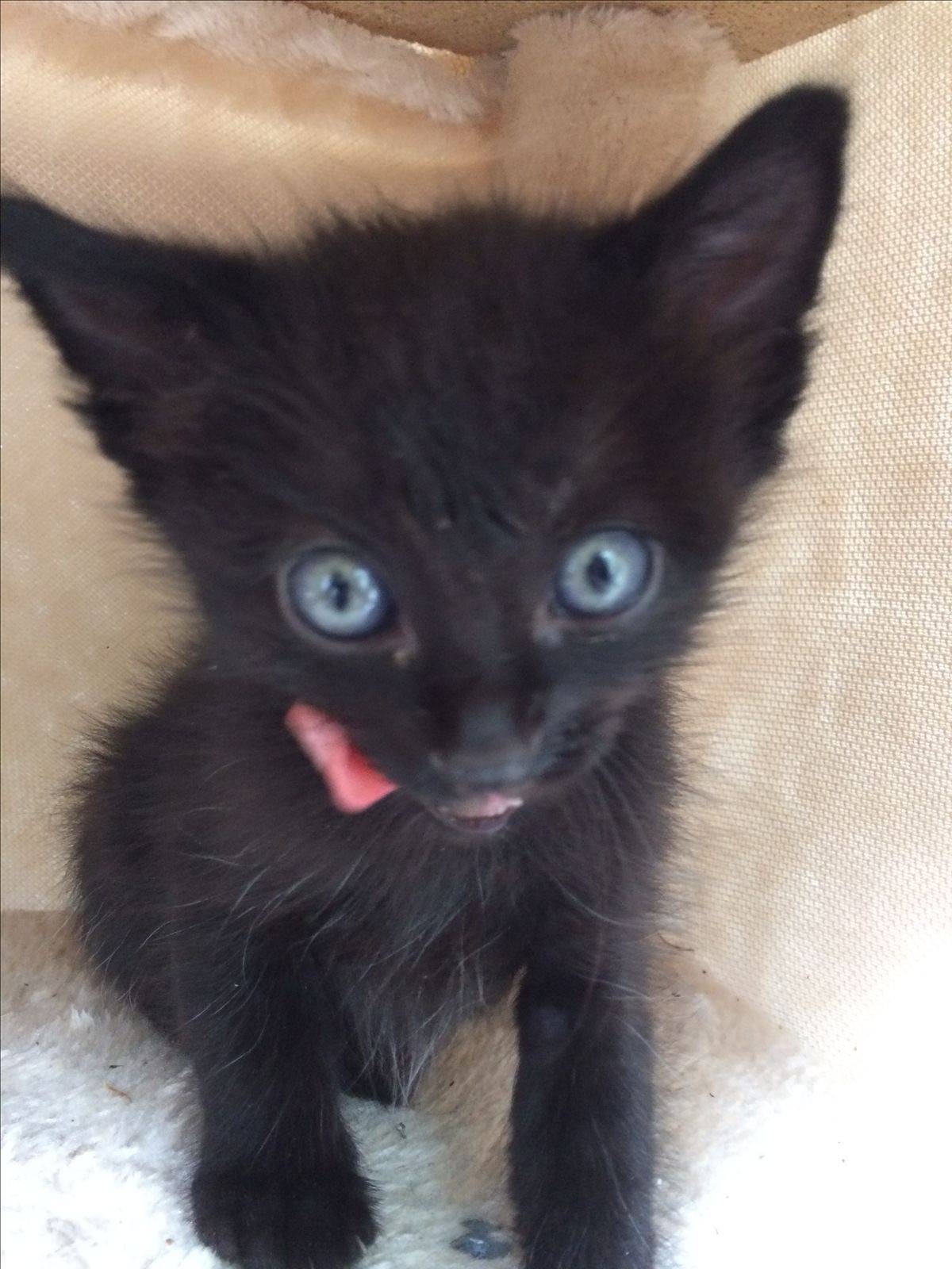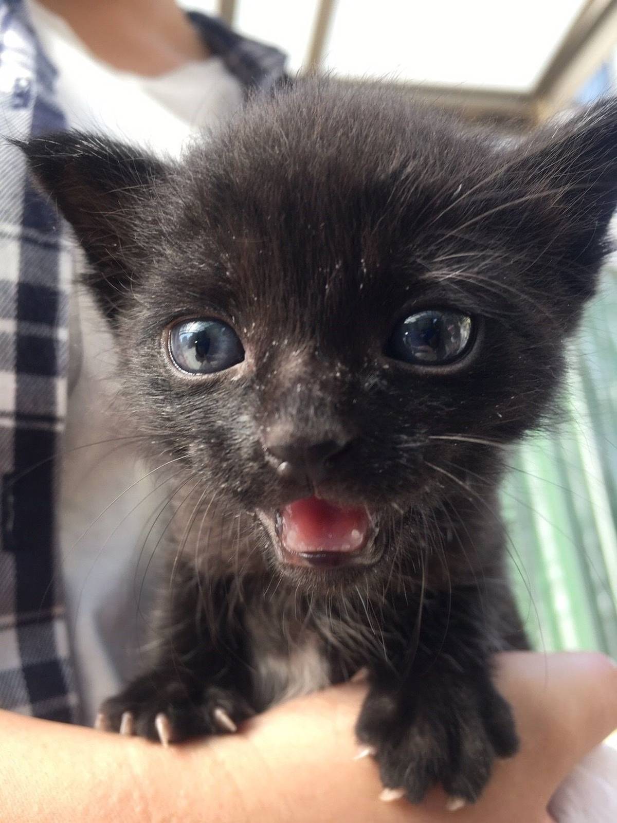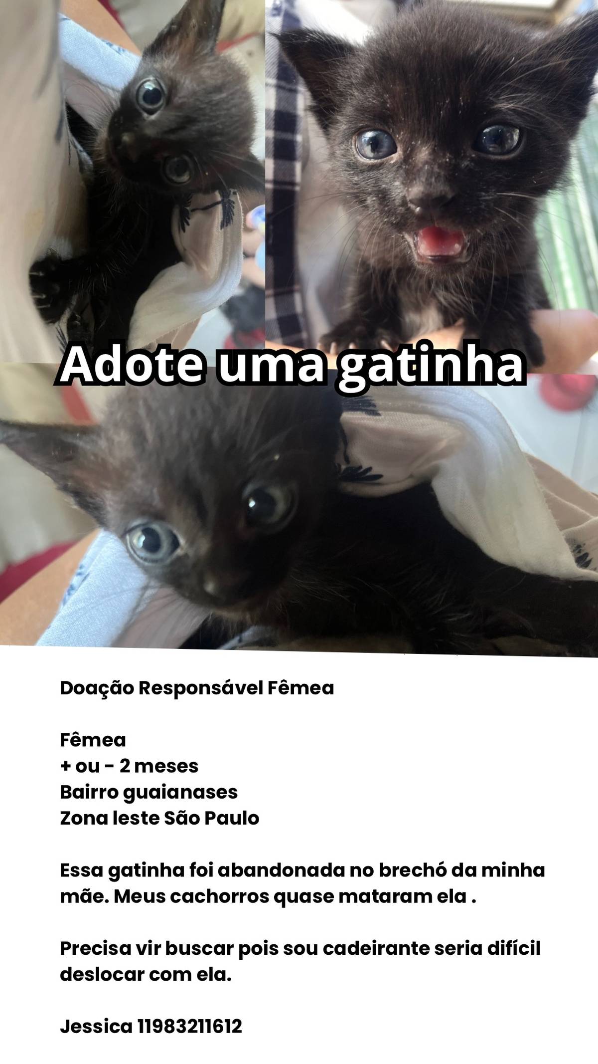 Essa gatinha foi abandonada no brechó da minha mãe. Meus cachorros quase mataram ela .