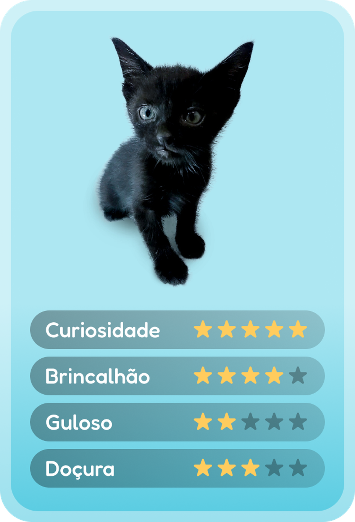 Animais têm sentimentos e precisam de cuidados e atenção todos os dias. Ao adotar, você será responsável por garantir que ele seja cuidado e amado durante toda a vida dele!