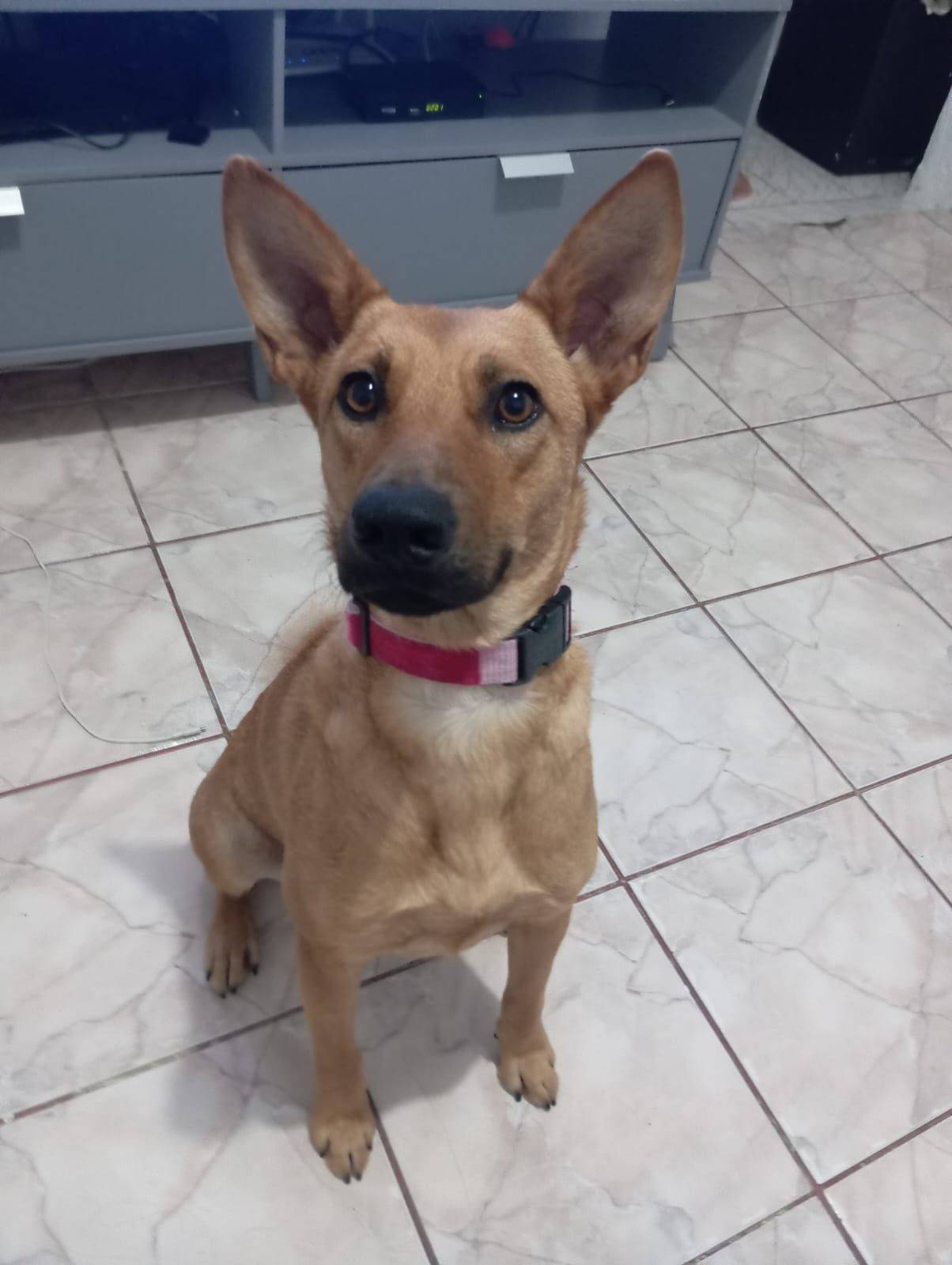 É dócil, amorosa e muito carinhosa. Se dá bem com outros cães, gosta de ficar dentro de casa e se comporta muito bem. Agora espera por uma família que a ame como ela merece.