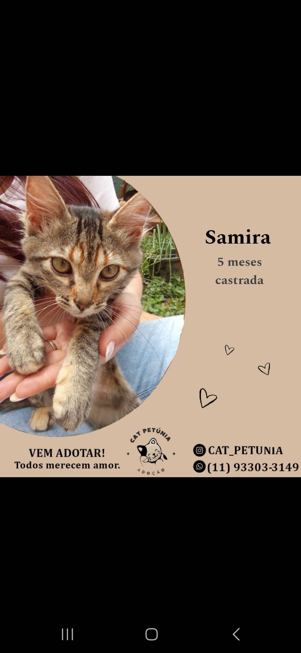 Animais têm sentimentos e precisam de cuidados e atenção todos os dias. Ao adotar, você será responsável por garantir que ele seja cuidado e amado durante toda a vida dele!