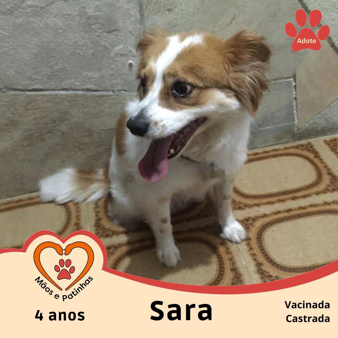 "Meu nome é Sara, tenho aproximadamente 4 anos, já estou castrada, vermifugada e com vacina em dia. Eu sou um neném porte médio PEQUENO, peludinha e linda, como vocês podem ver na foto. Sou uma doguinha que gosta da companhia das pessoas...GOSTA DE FICAR DENTRO DE CASA, sendo paparicada com muito amor. Se você quer ser meu papai ou mamãe, saiba: serei uma fiel companheira!"