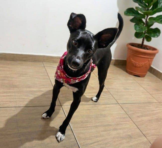 Hoje está recuperada, se dá bem com outros cães e gatos e adora brincar. Agora espera por uma família que Ihe ofereça amor, segurança e um lar definitivo.