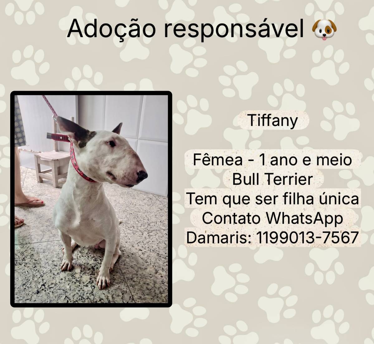 Animais têm sentimentos e precisam de cuidados e atenção todos os dias. Ao adotar, você será responsável por garantir que ele seja cuidado e amado durante toda a vida dele!