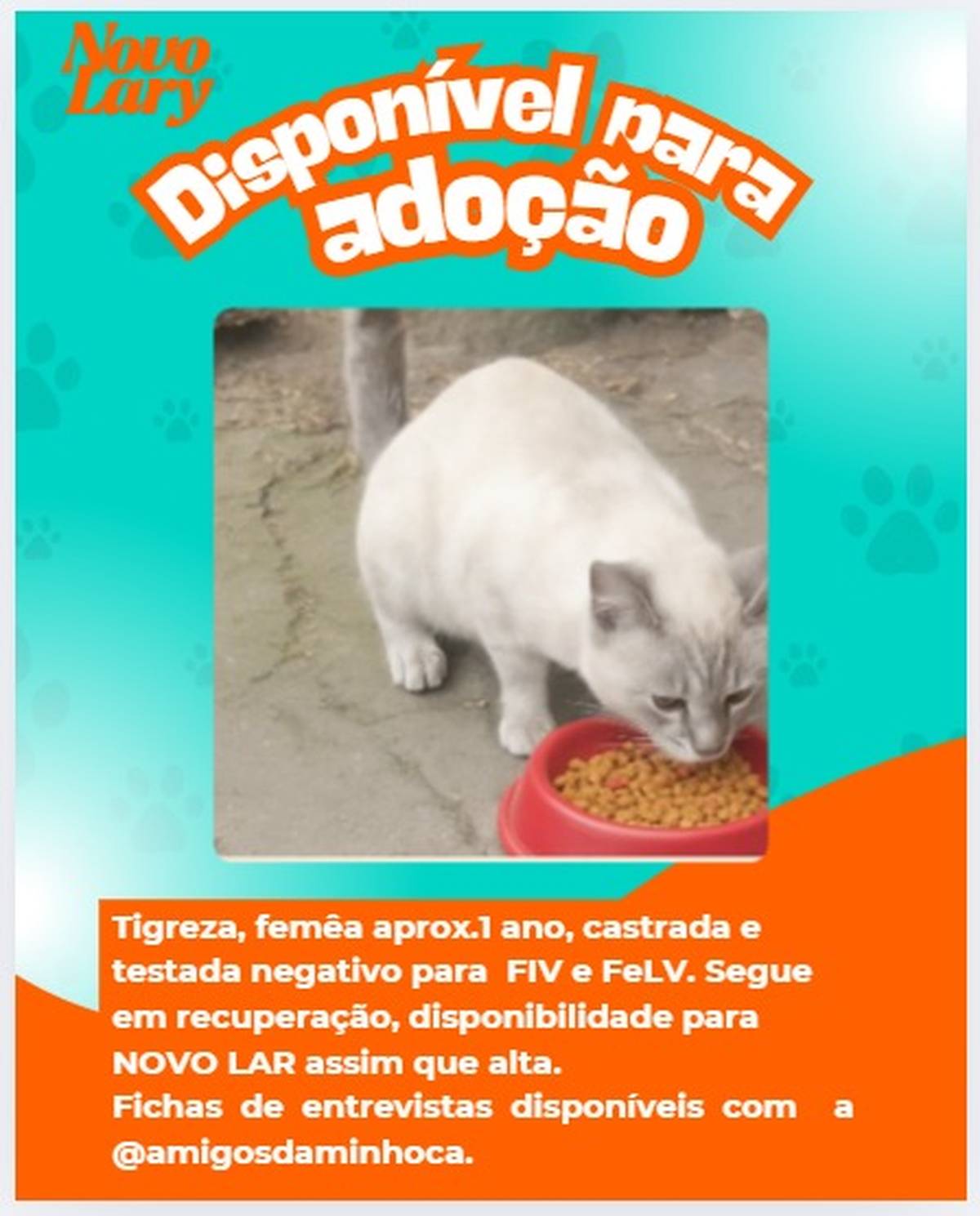 Tigreza está pronta para encontrar um lar de amor pra vida toda. Muito dócil, brincalhona, castrada, testada negativa