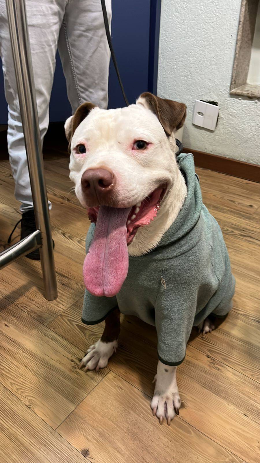 Esse é o Tobias, resgatado por mim, tem entre 1 ano e meio a 2 aninhos. Está prontinho pra ser adotado — já iniciou o protocolo vacinal e se adotado tem adestramento e castrado