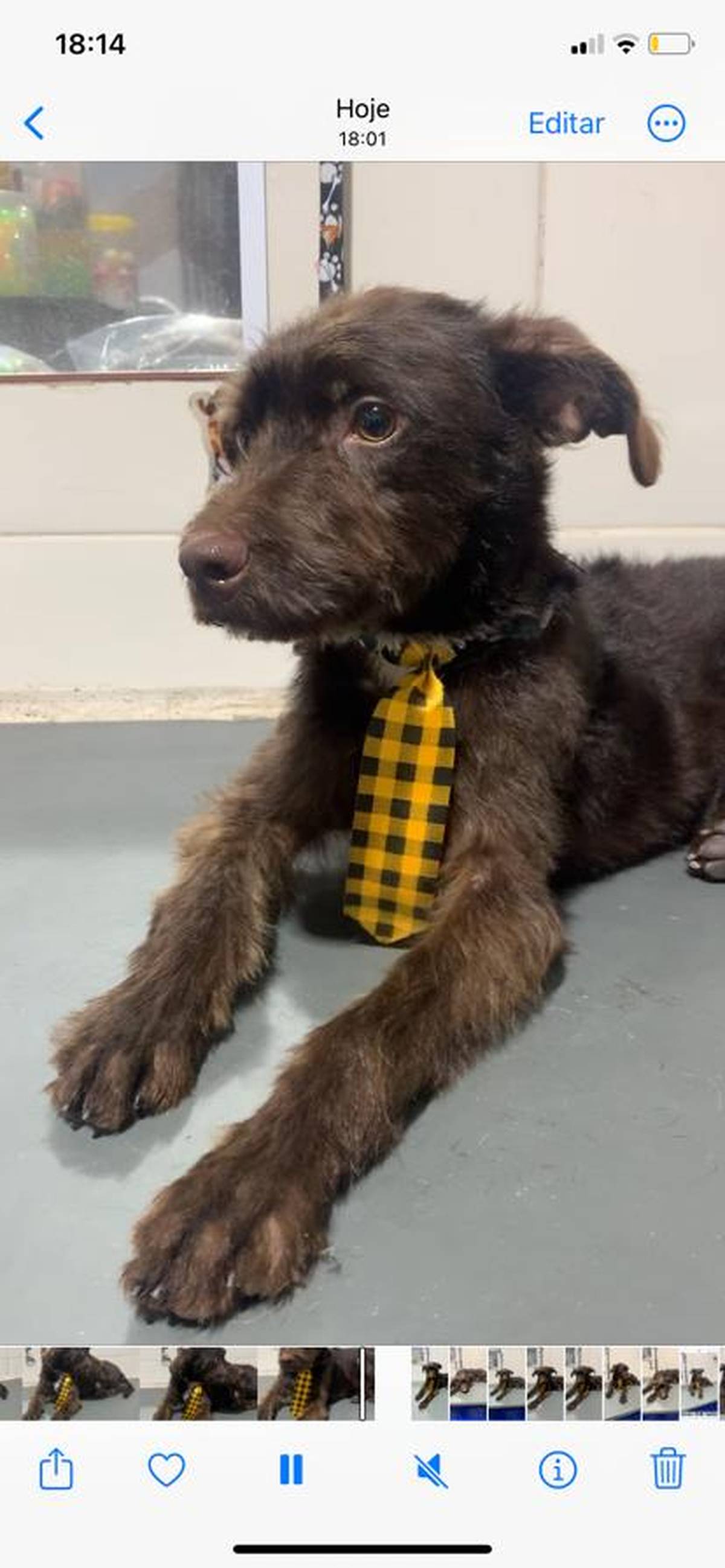 Ele pesa 7kg é porte pequeno e tem aproximadamente 1 ano