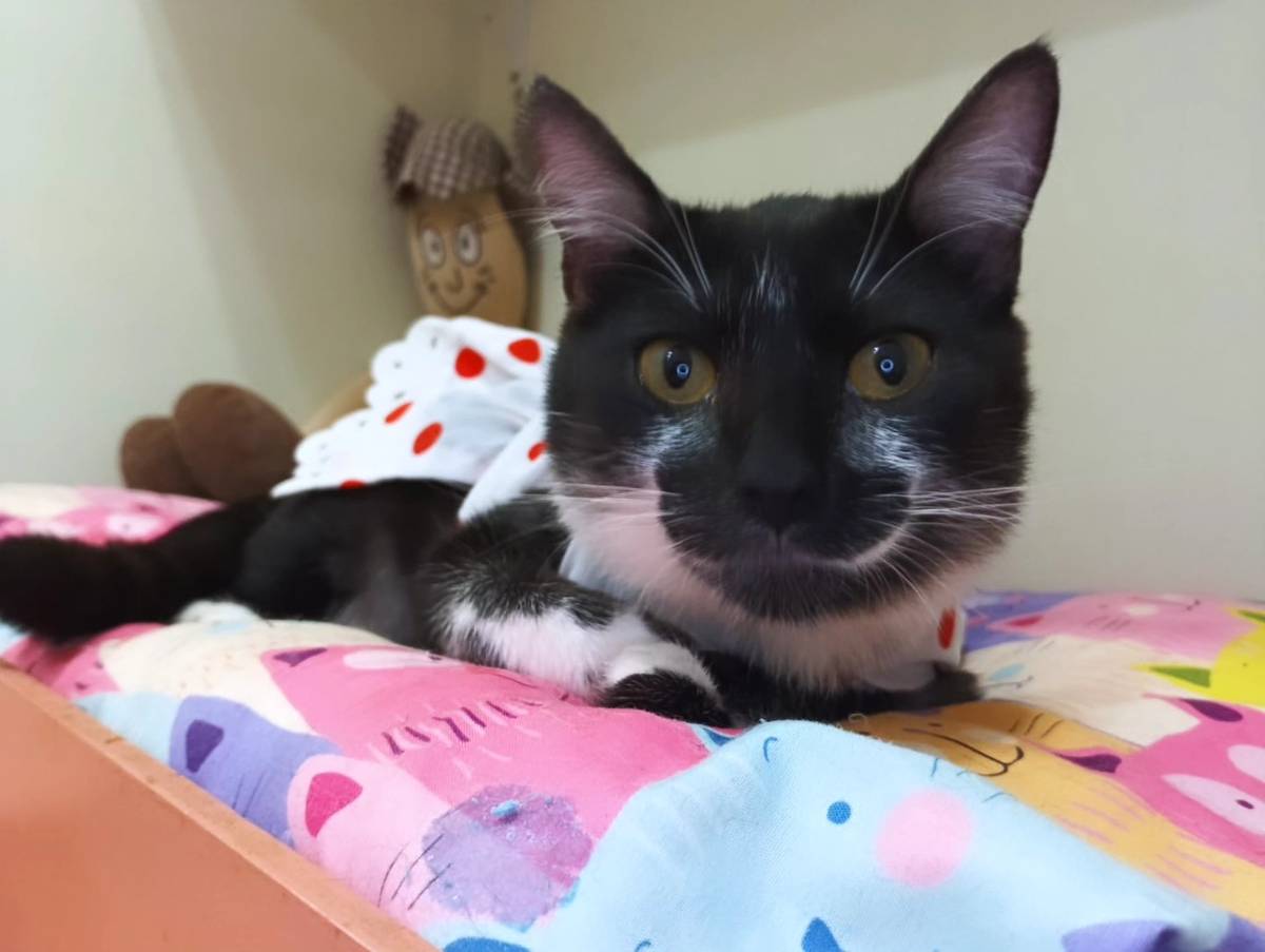 Oiê! Eu sou a Tônia. Fui resgatada junto da minha mãe e das minhas irmãs, mas todas já encontraram seus lares cheios de amor… e agora sou eu quem ficou esperando minha vez.