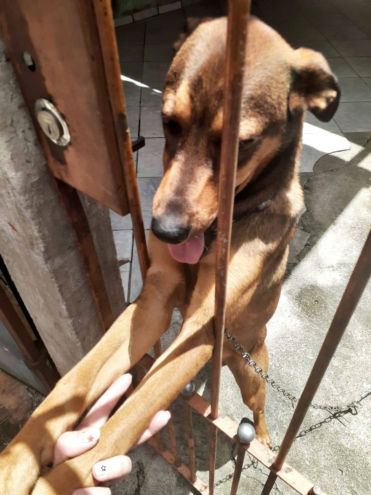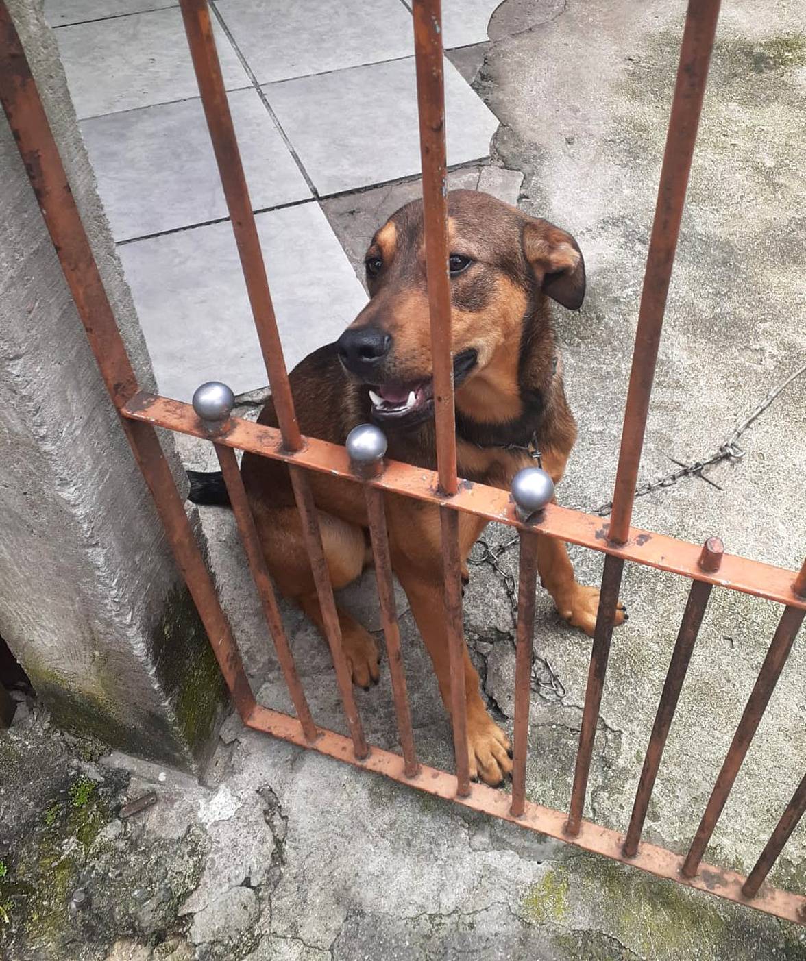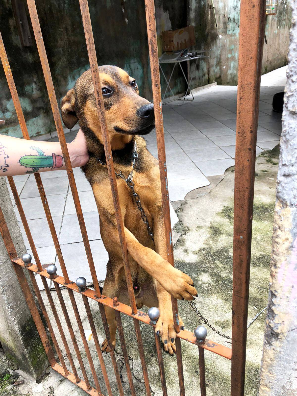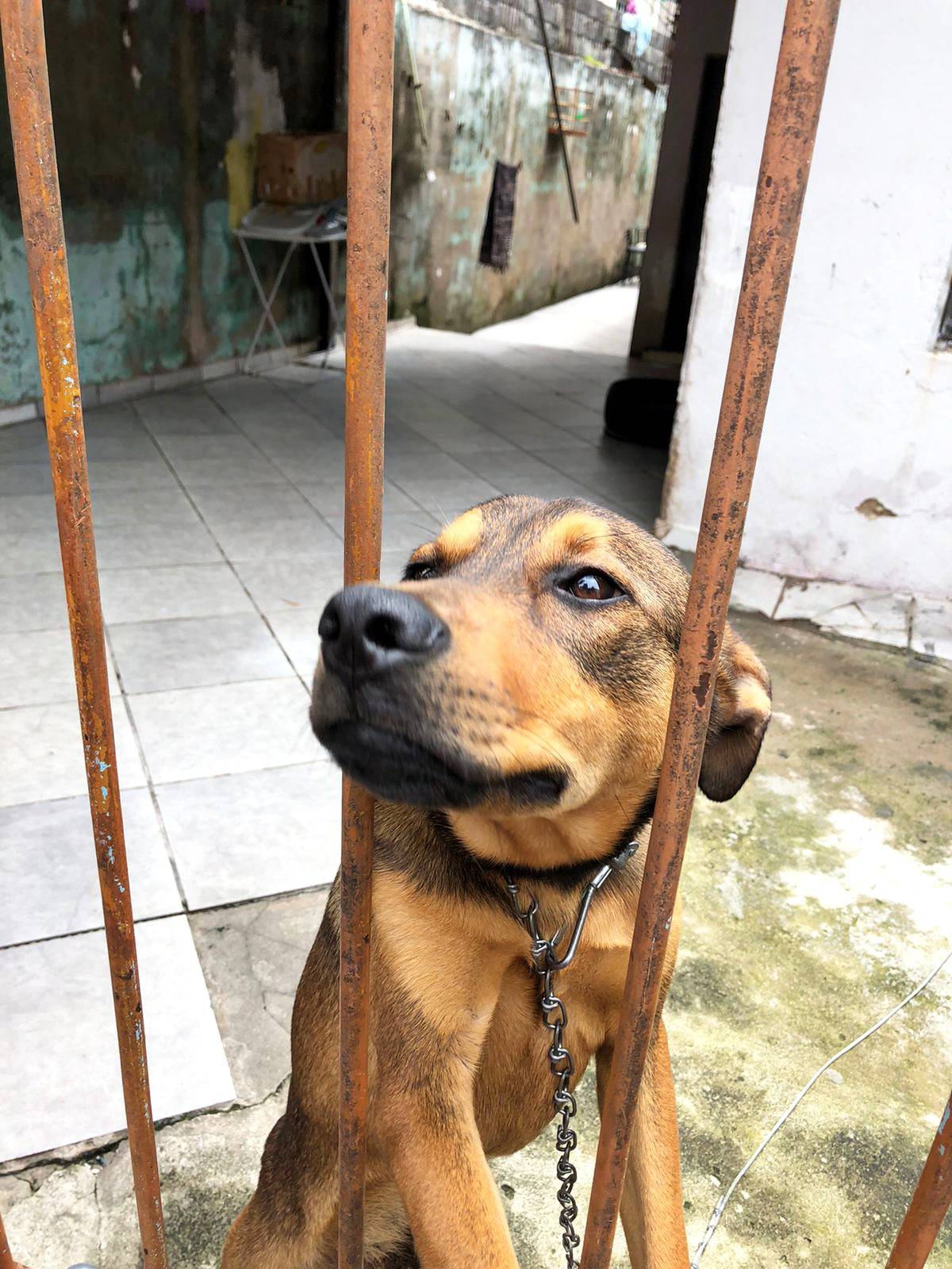 Esse menino lindo está com umas pessoas que vão se mudar e não querem levar ele, além de não ligarem pra ele, vive acorrentado.
