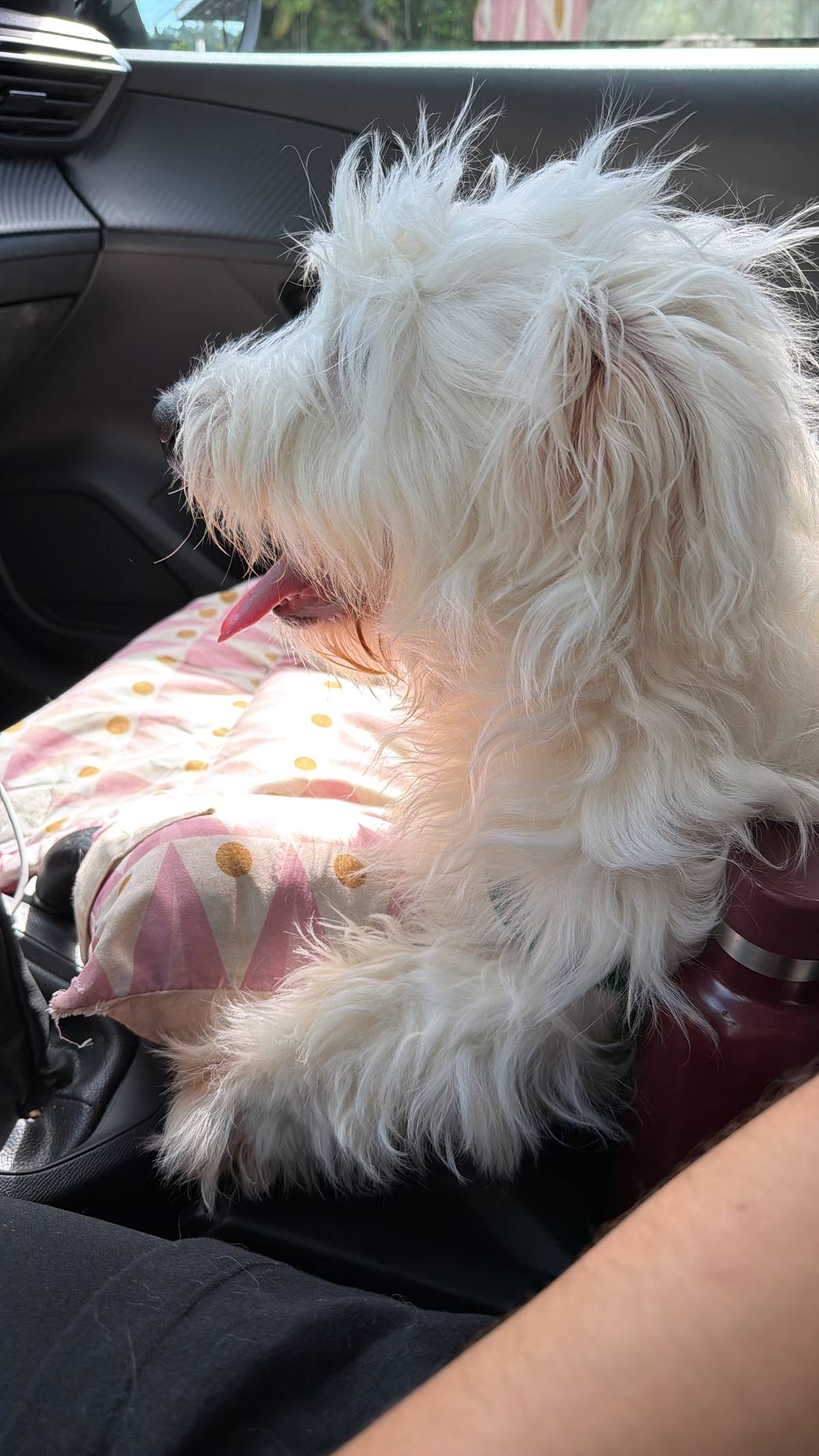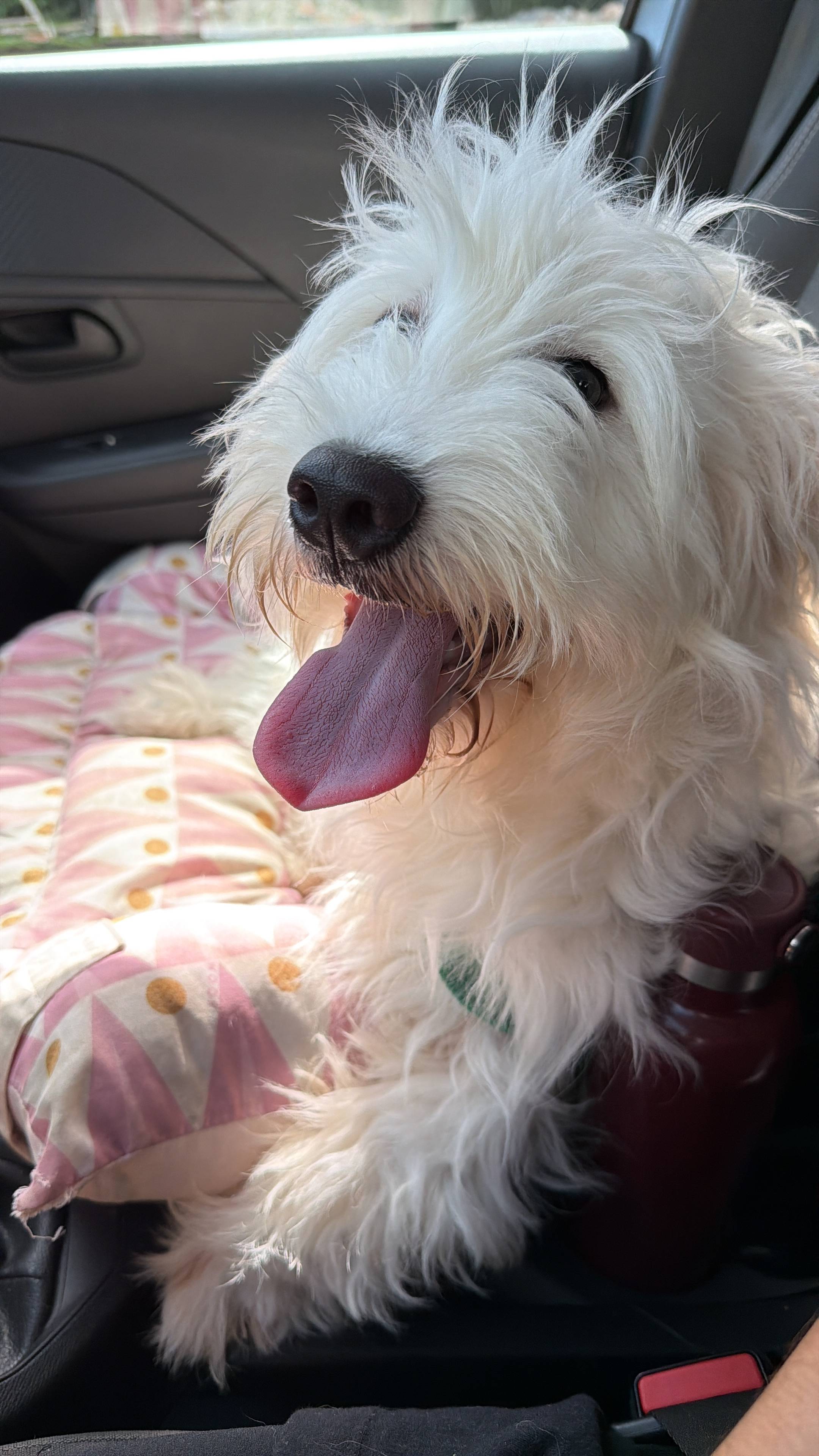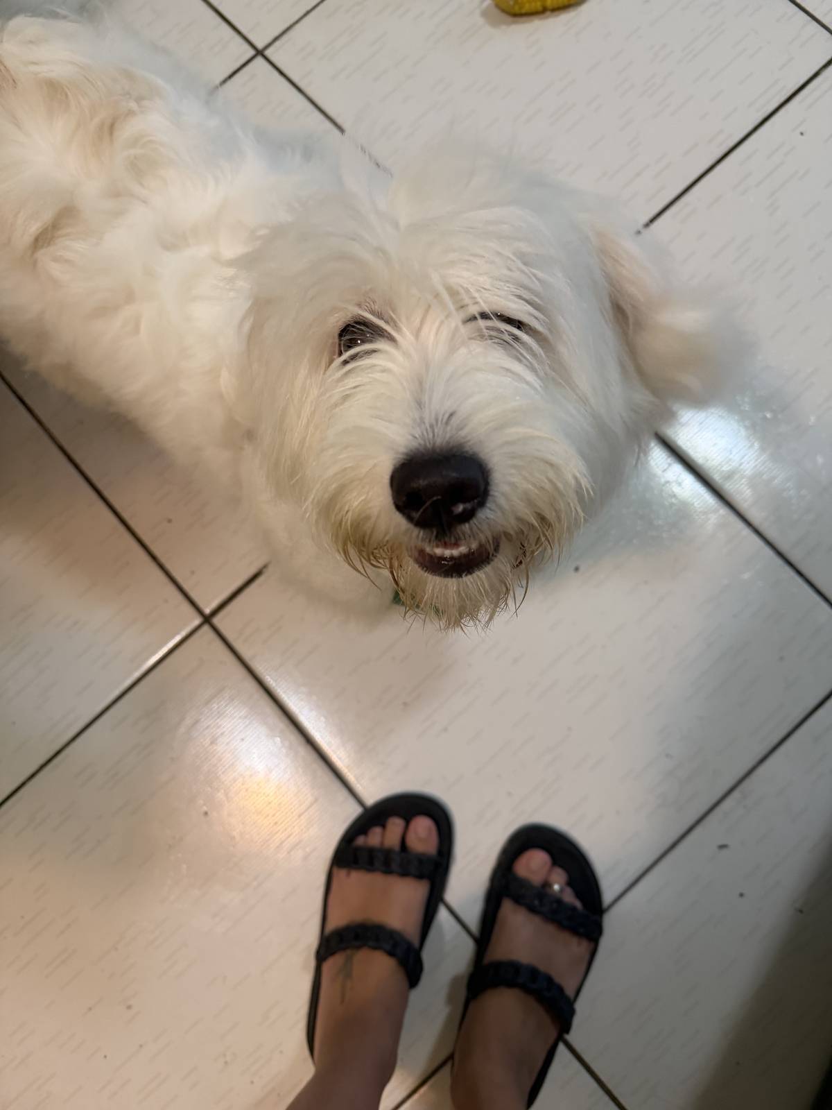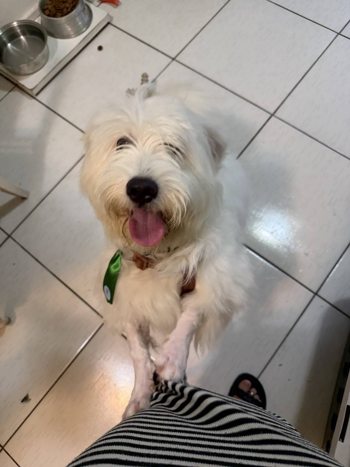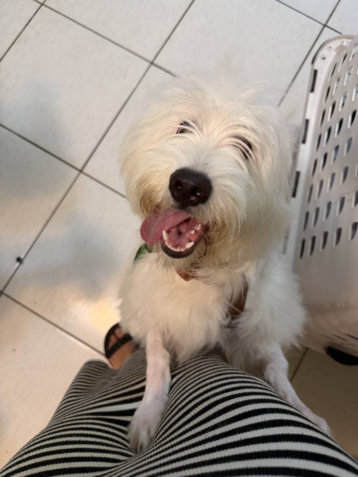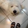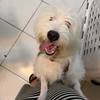 Demos o nome para esse floco branco peludo de Vanilla, é um macho de aproximadamente 7 a 8 meses, ou seja, ainda filhotão — pesa cerca de 10kg, é porte pequeno, rebaixadinho, conhecido como fiapo de manga, impossível de não amar