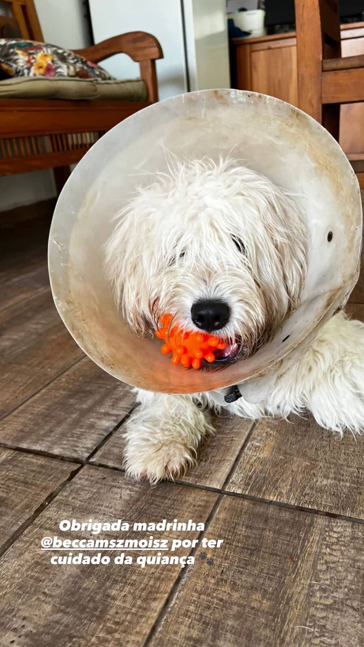 Uma protetora amiga da região acolheu e entrou em contato comigo pedindo ajuda, porque ela já cuida de muitos cães e não tinha mais como dar conta. E foi assim que ele veio parar aqui e hoje faz parte do projeto Guardião das Patinhas