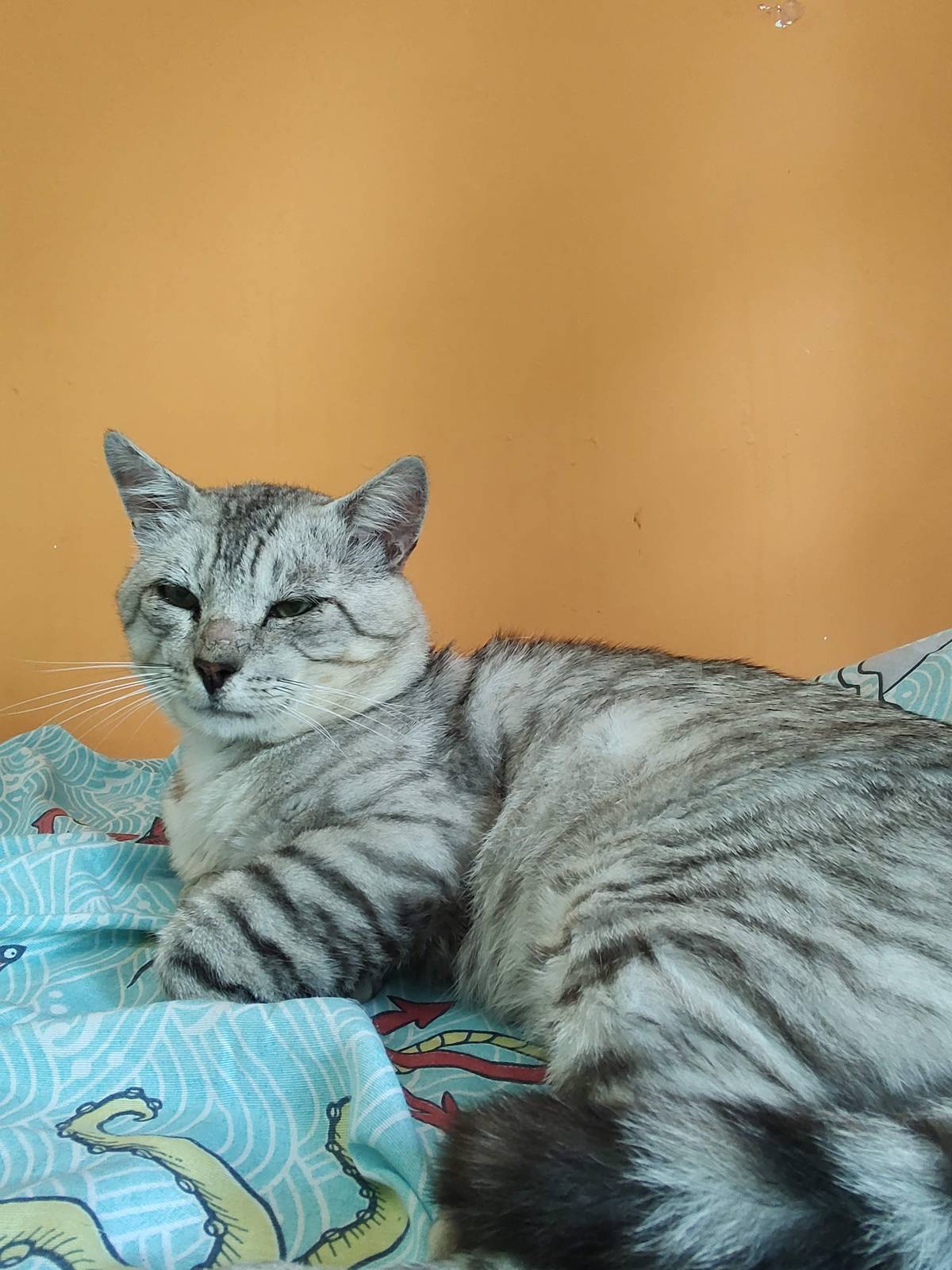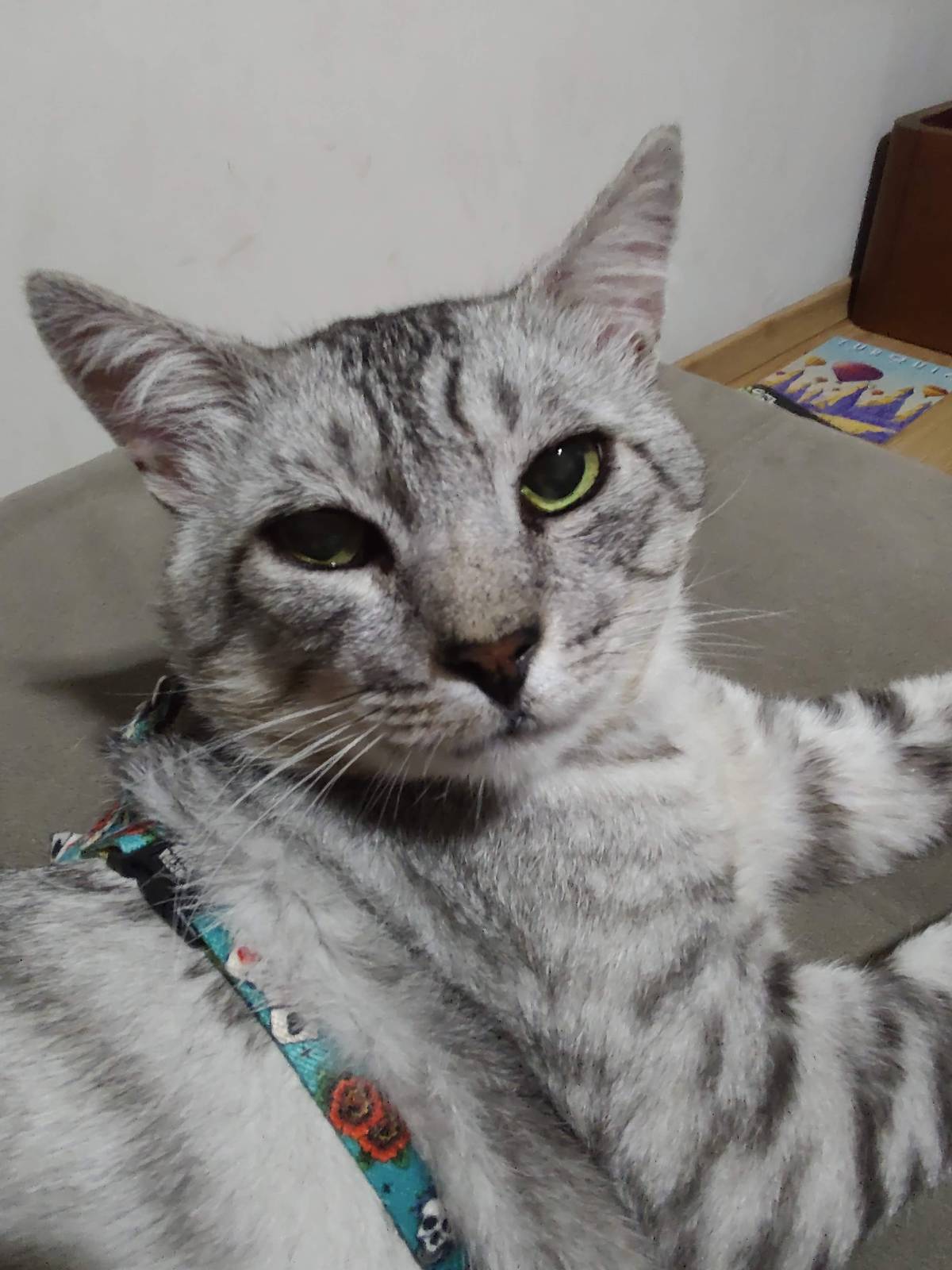 - Um pouco assustado, mas e por conta de seu historico vivendo na rua. Bastou um pouco de carinho (e sache) e ja virou um gato manhoso.