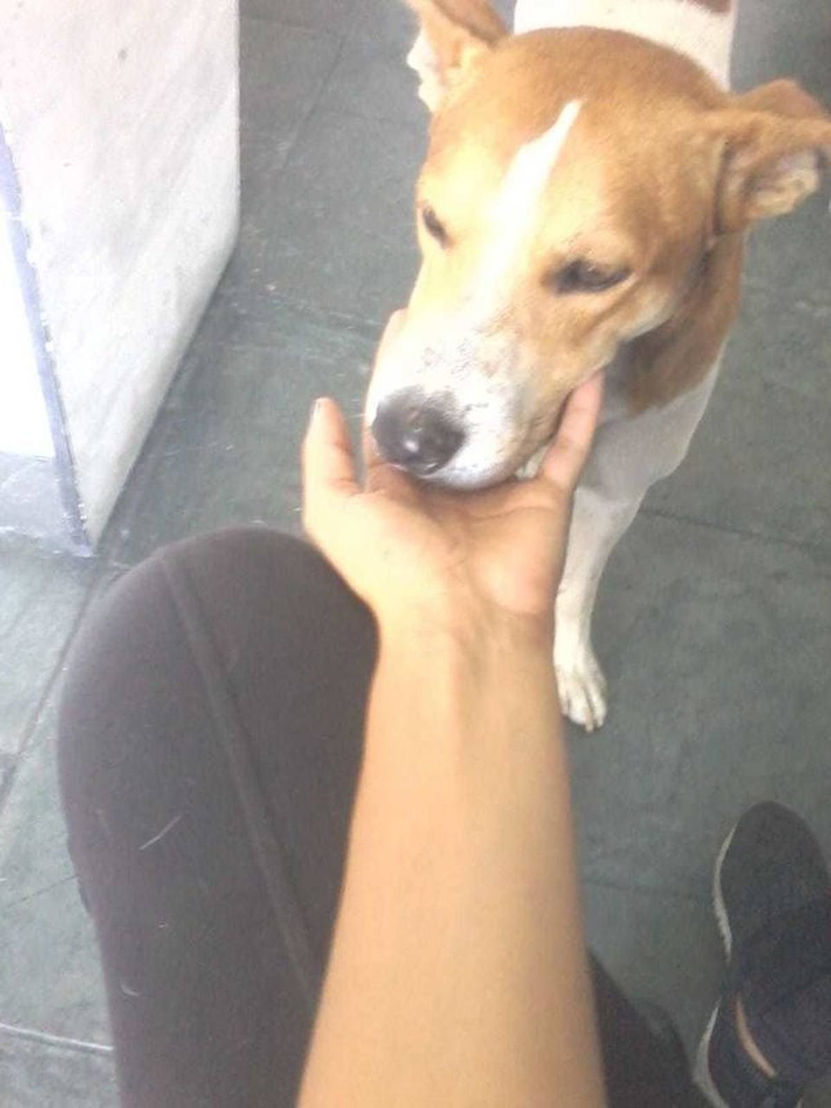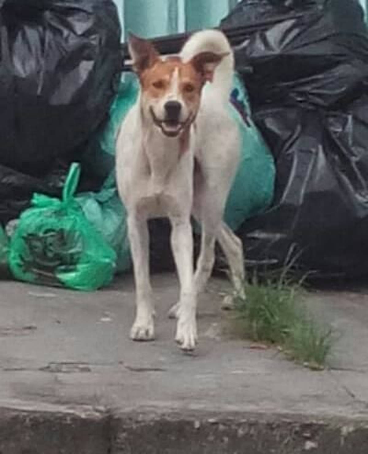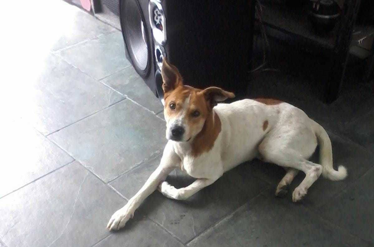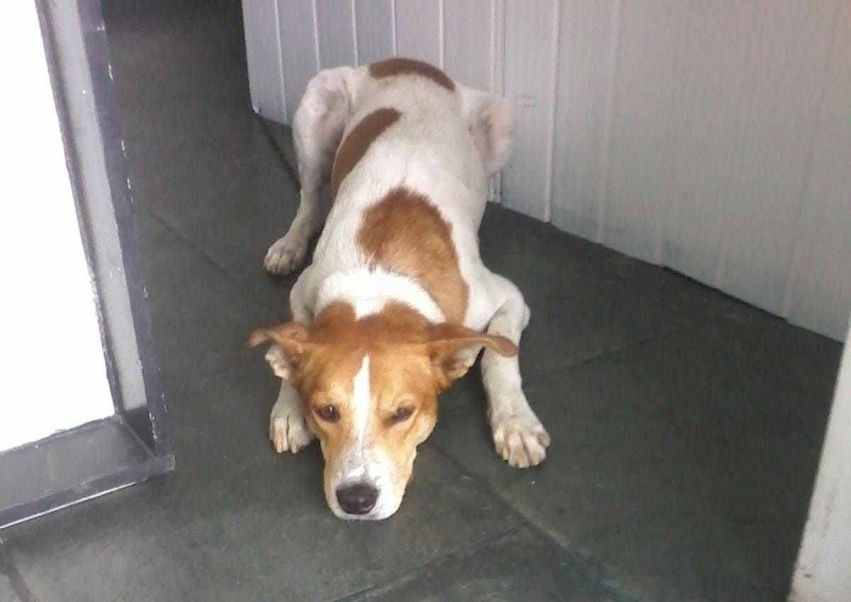 Certo dia ele apareceu na rua da loja onde eu trabalho e percebemos que sempre ficava deitadinho em uma escada, triste e as vezes para se proteger do sol quente se escondia em um beco de uma casa, onde se localiza o registro de luz externo.